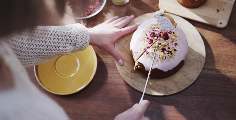 An elegant tiled dining area with its lofted ceiling and an inviting chandelier is where cherished memories will be made.
